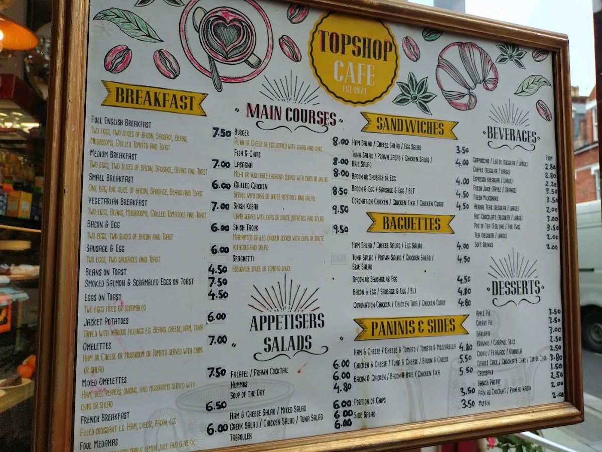 Topshop Cafe Menu
